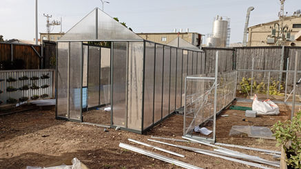 כחלק מתהליך הפיתוח של החצר קנינו חממות והתחלנו להרכיב אותם עם מתנדבים אך לא סיימנו.